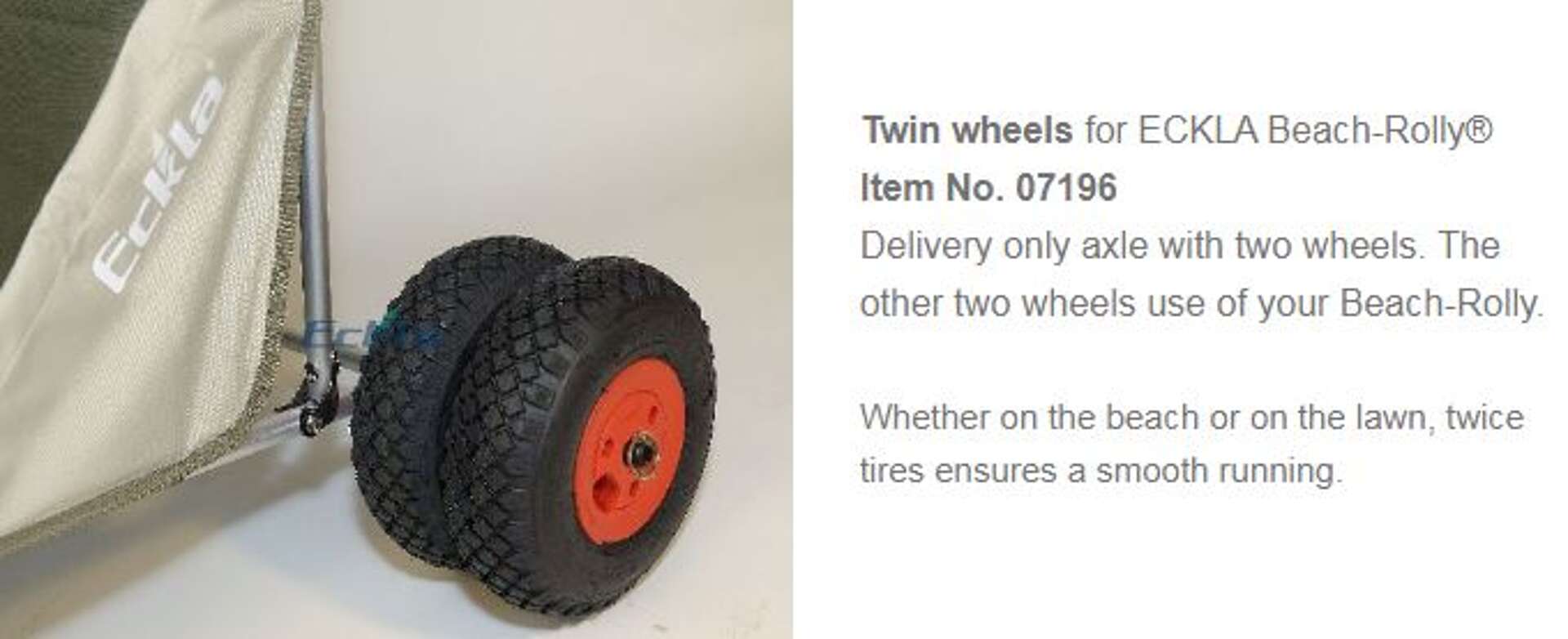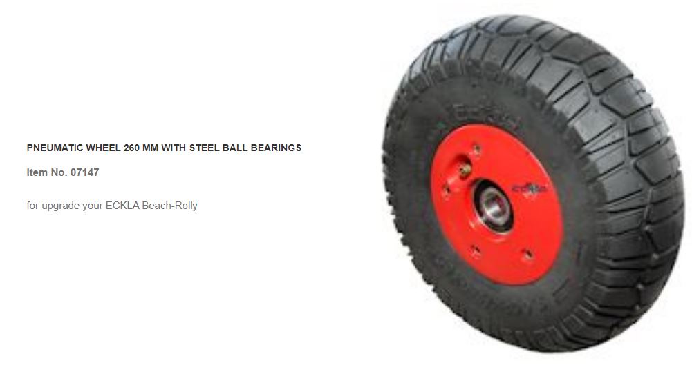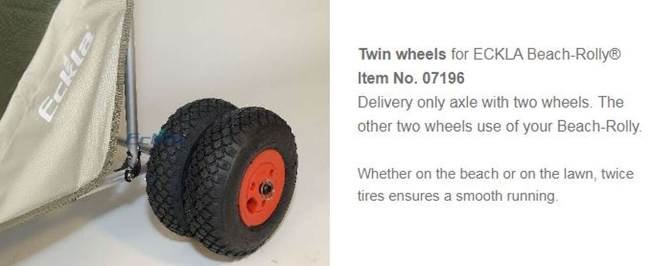 Le larghe ruote pneumatiche sono adatte anche per sabbia e ghiaia, si montano e si smontano rapidamente grazie a delle semplici coppiglie.