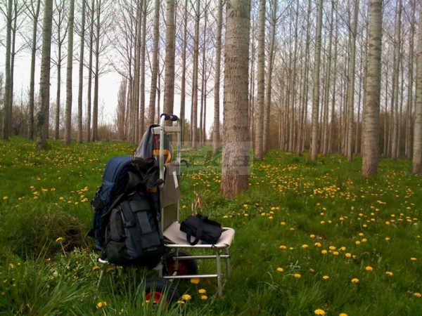 Dotato di tasche e ganci per molteplici soluzioni, si trasforma in una comoda sedia, e si ripiega facilmente.