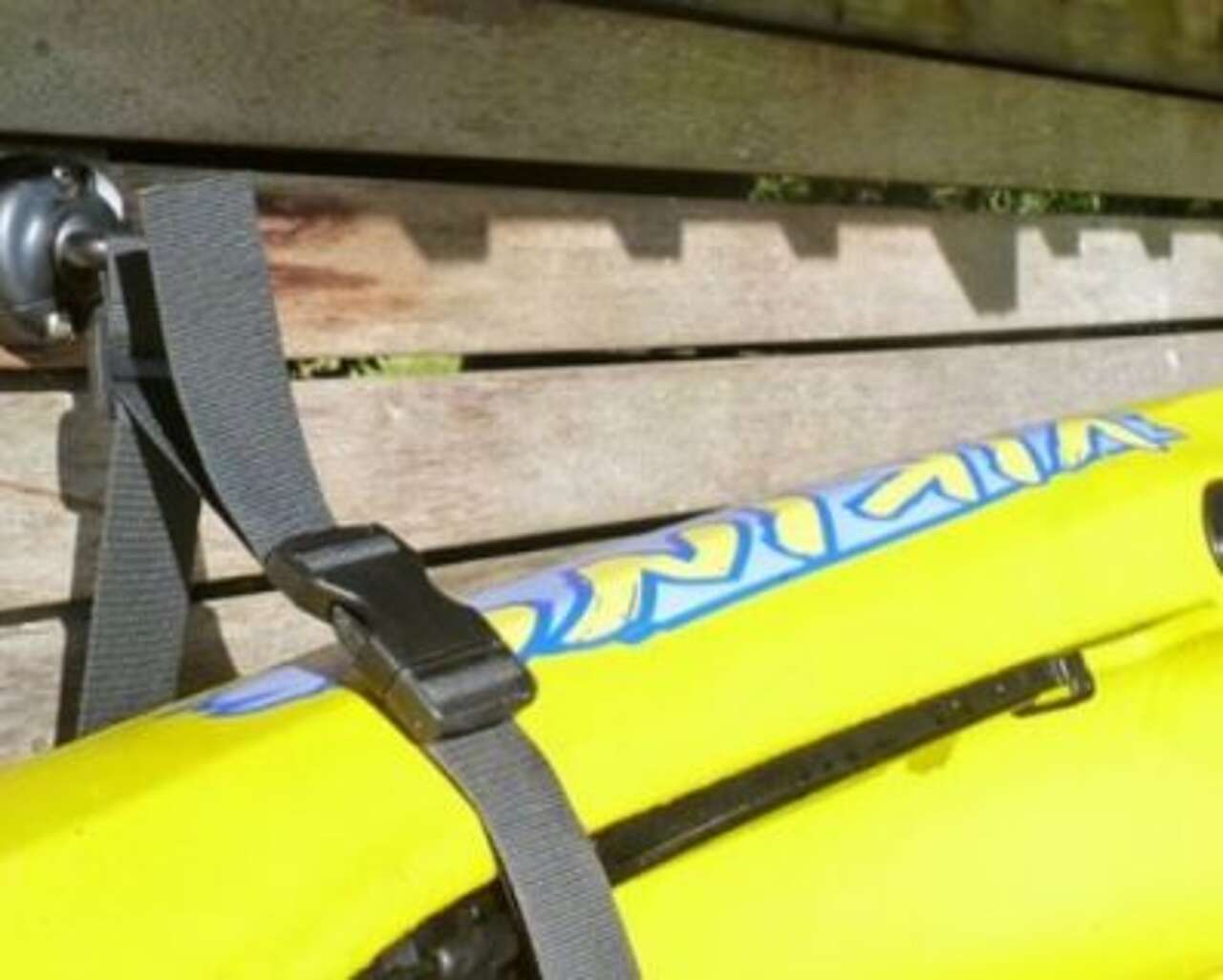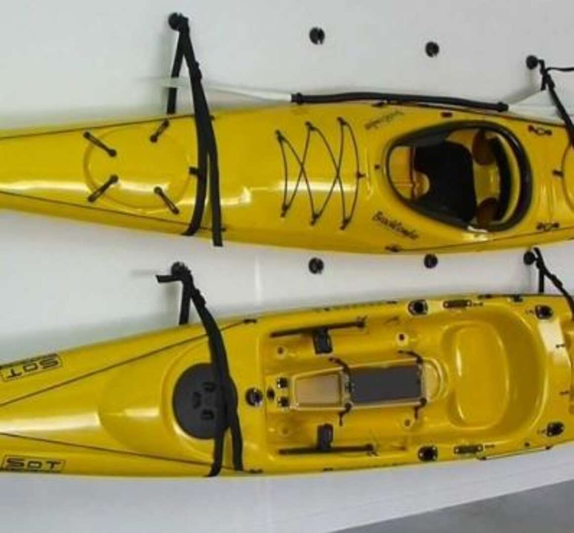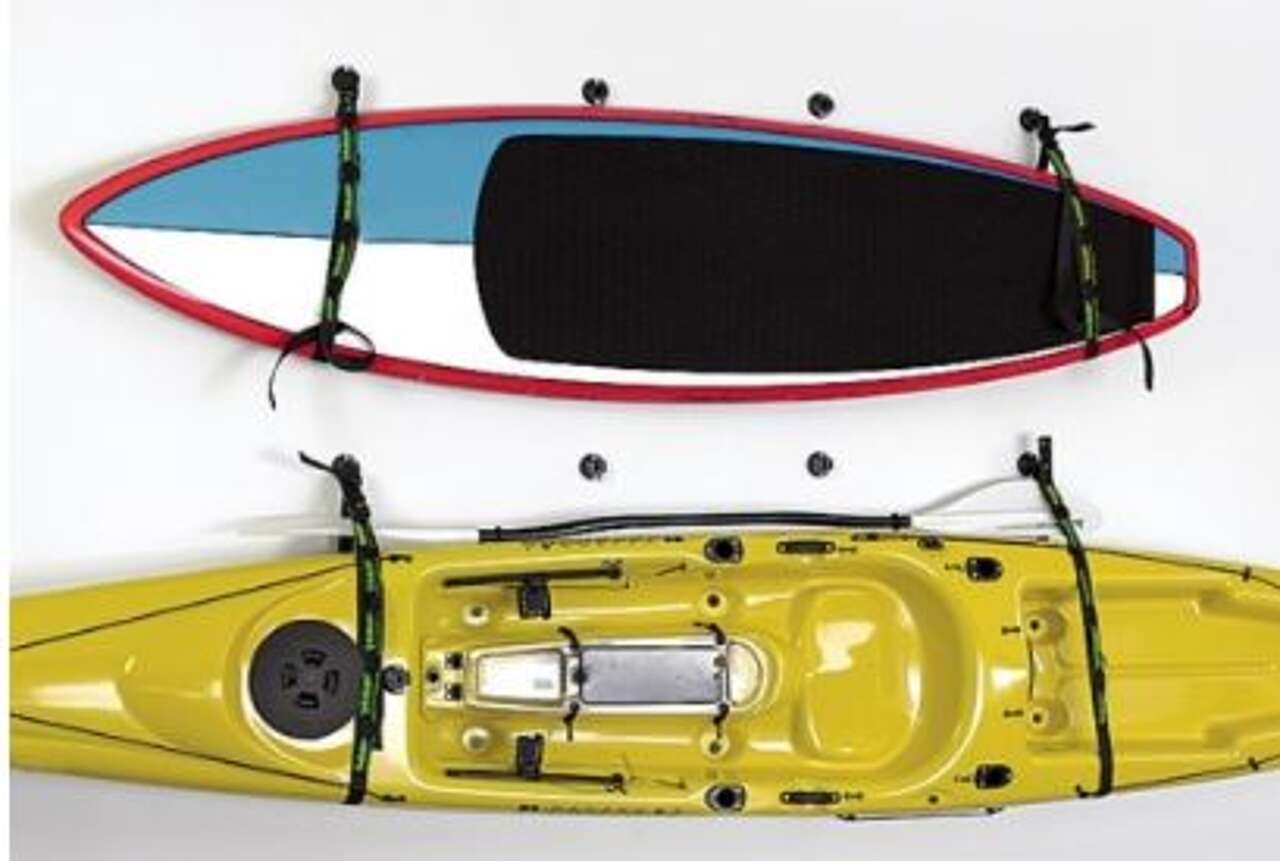 L'imbragatura Wall Sling consente di risparmiare spazio in garage, tettoie o cortili permettendo di appendere il kayak alla parete.