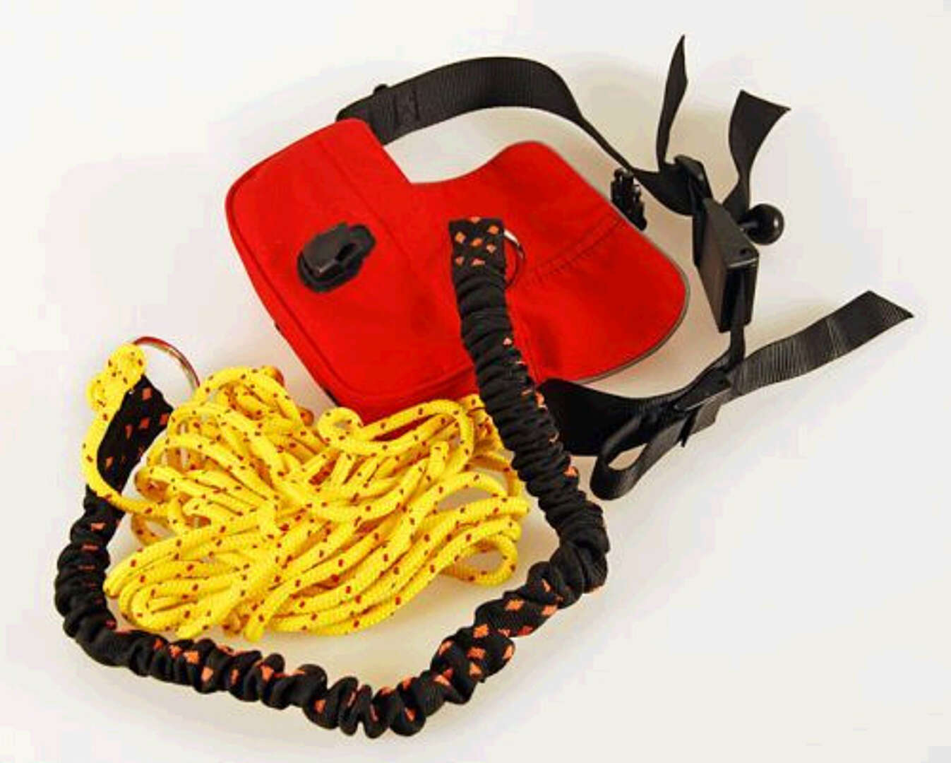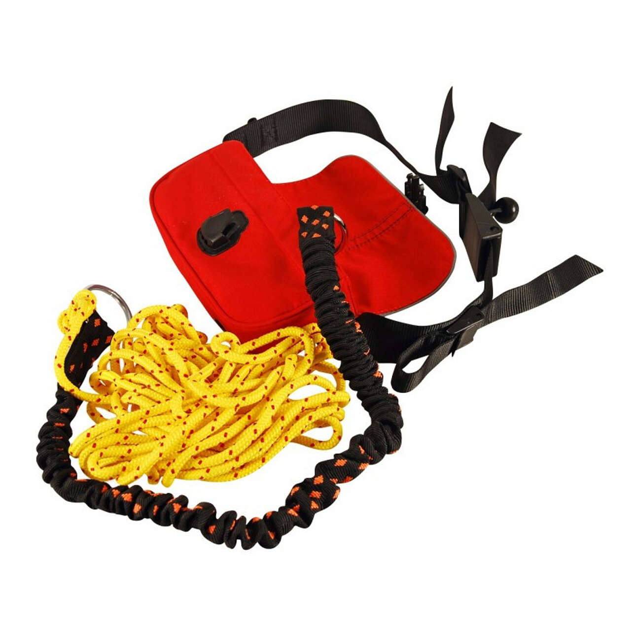 Cinturone da traino con 10 mt di cordino e cow tail che limita gli strappi.
