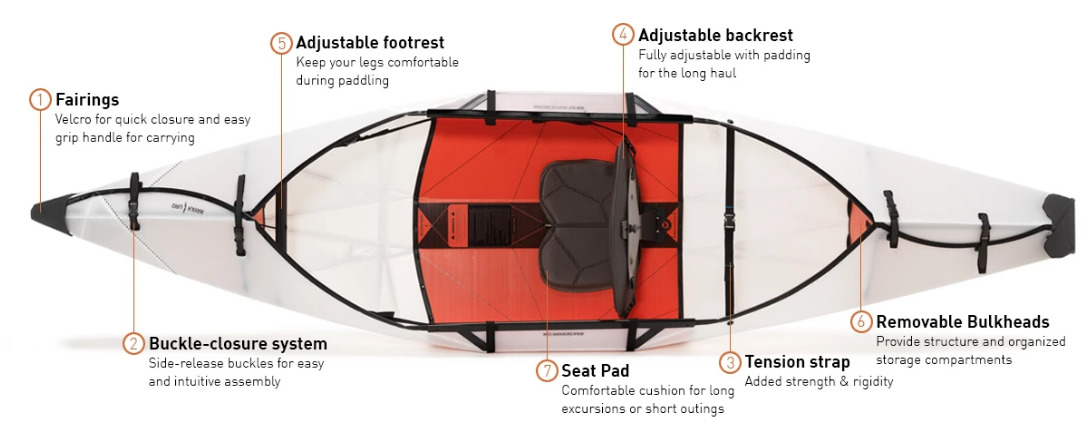 Il kayak pieghevole Inlet è la nostra barca più leggera, più facile da trasportare e più facile da montare.