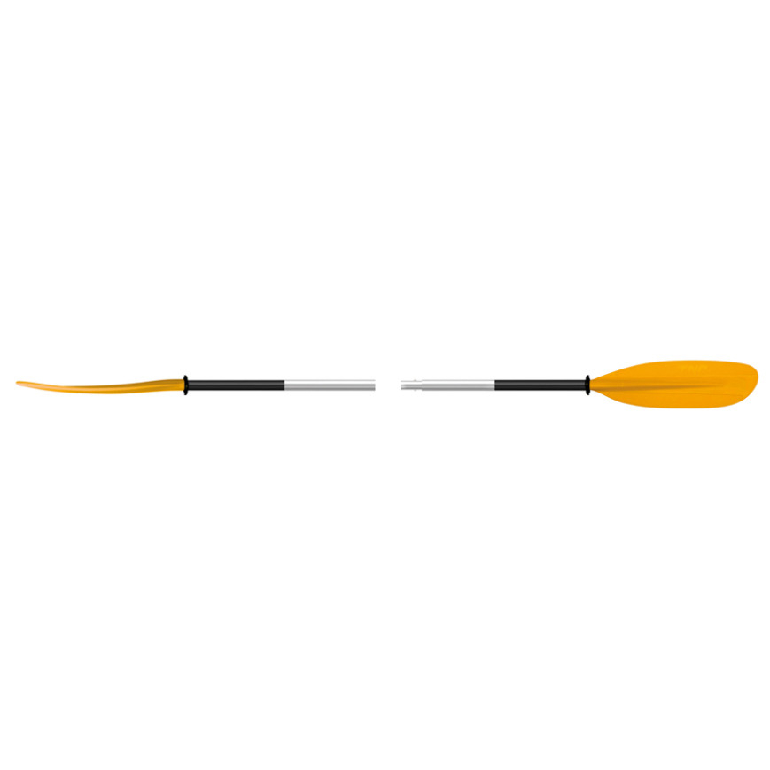 Pagaia divisibile in 2 pezzi caratterizzata da estrema robustezza con pale in HDPE e manico in alluminio dotato di spessore impugnatura sul lato destro ( sinistro su richiesta )