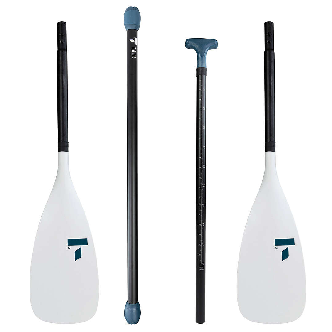 Sup completo di kit per l'utilizzo da kayak, composto dal sedile e dalla pagaia convertibile in 4 pezzi che a seconda della combinazione può essere assemblata come pagaia da SUP oppure come pagaia da kayak.